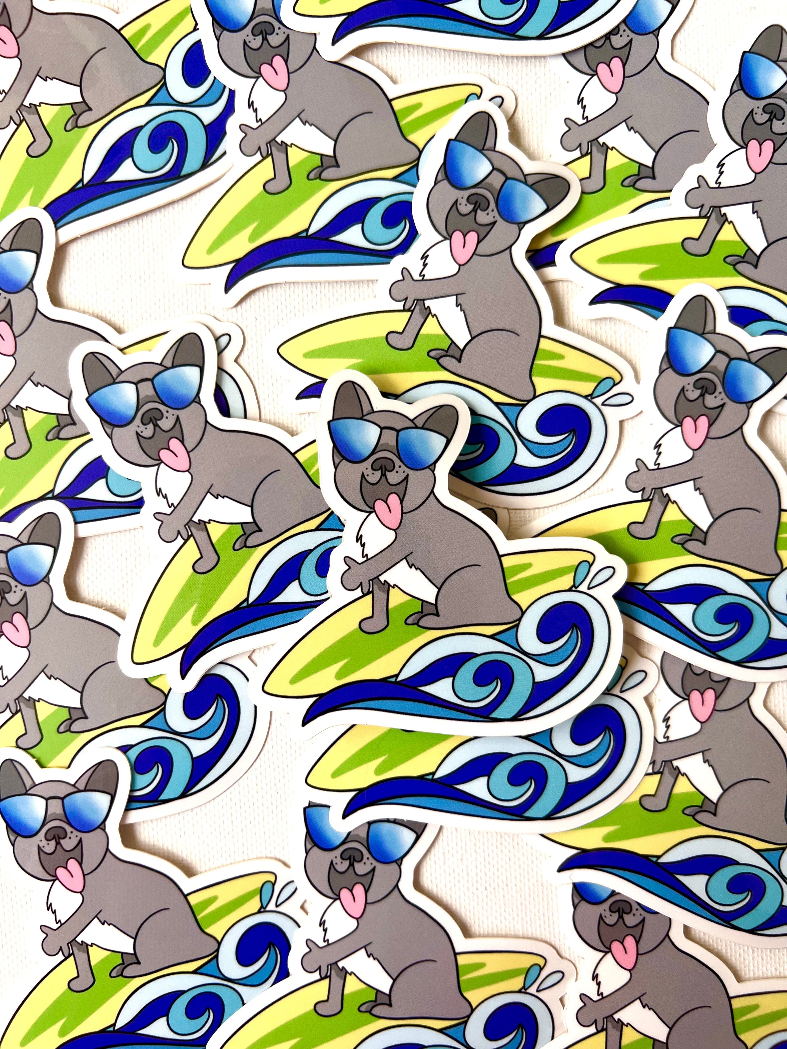 Surf's Pup! French Bulldog Waterbottle/Laptop Sticker